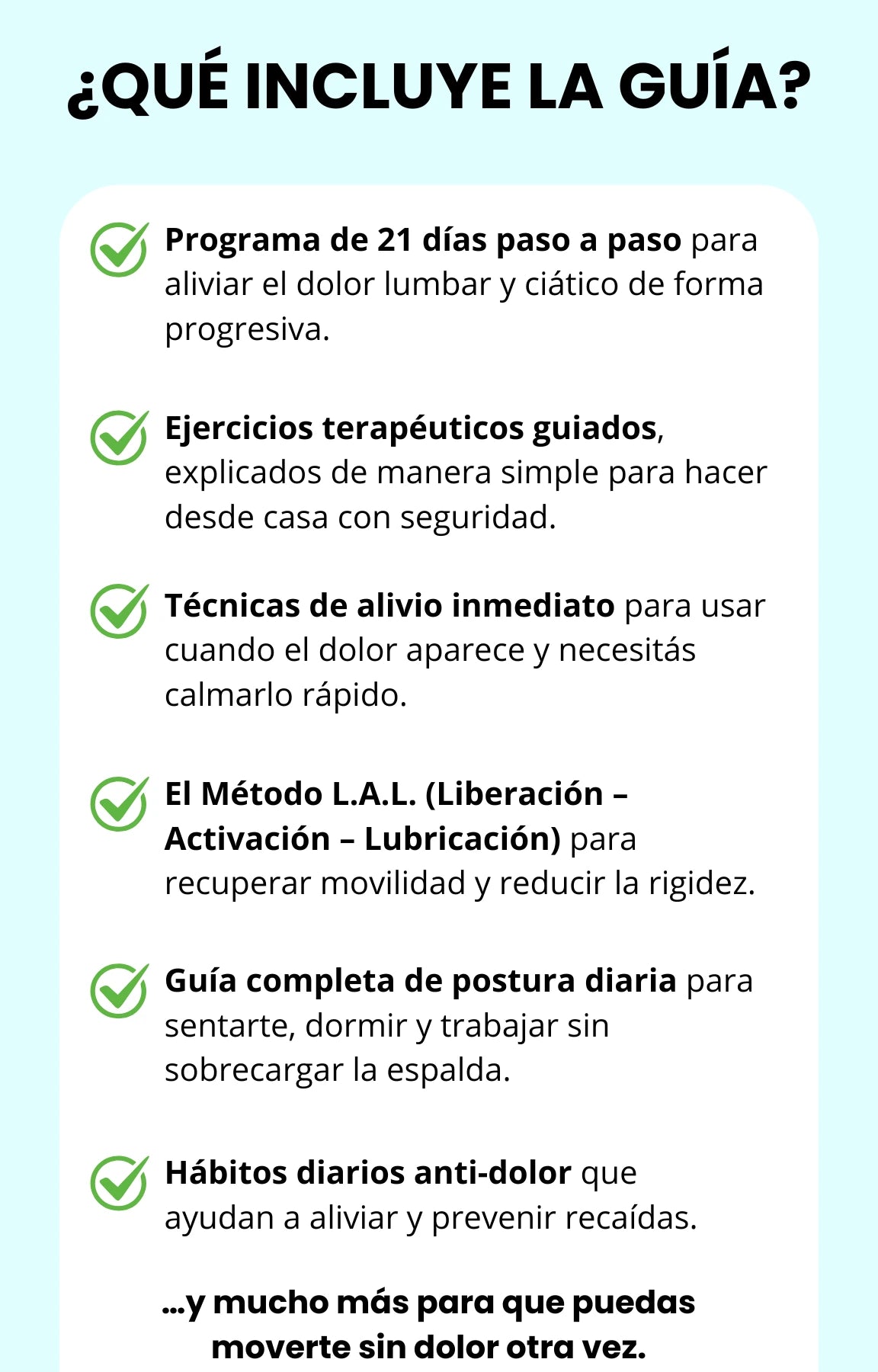 El programa está basado en principios de fisioterapia moderna, ejercicios terapéuticos seguros y técnicas efectivas probadas en cientos de personas con dolor lumbar y ciático.